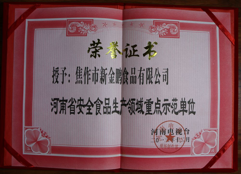 安全食品生產(chǎn)領(lǐng)域重點示范單位
